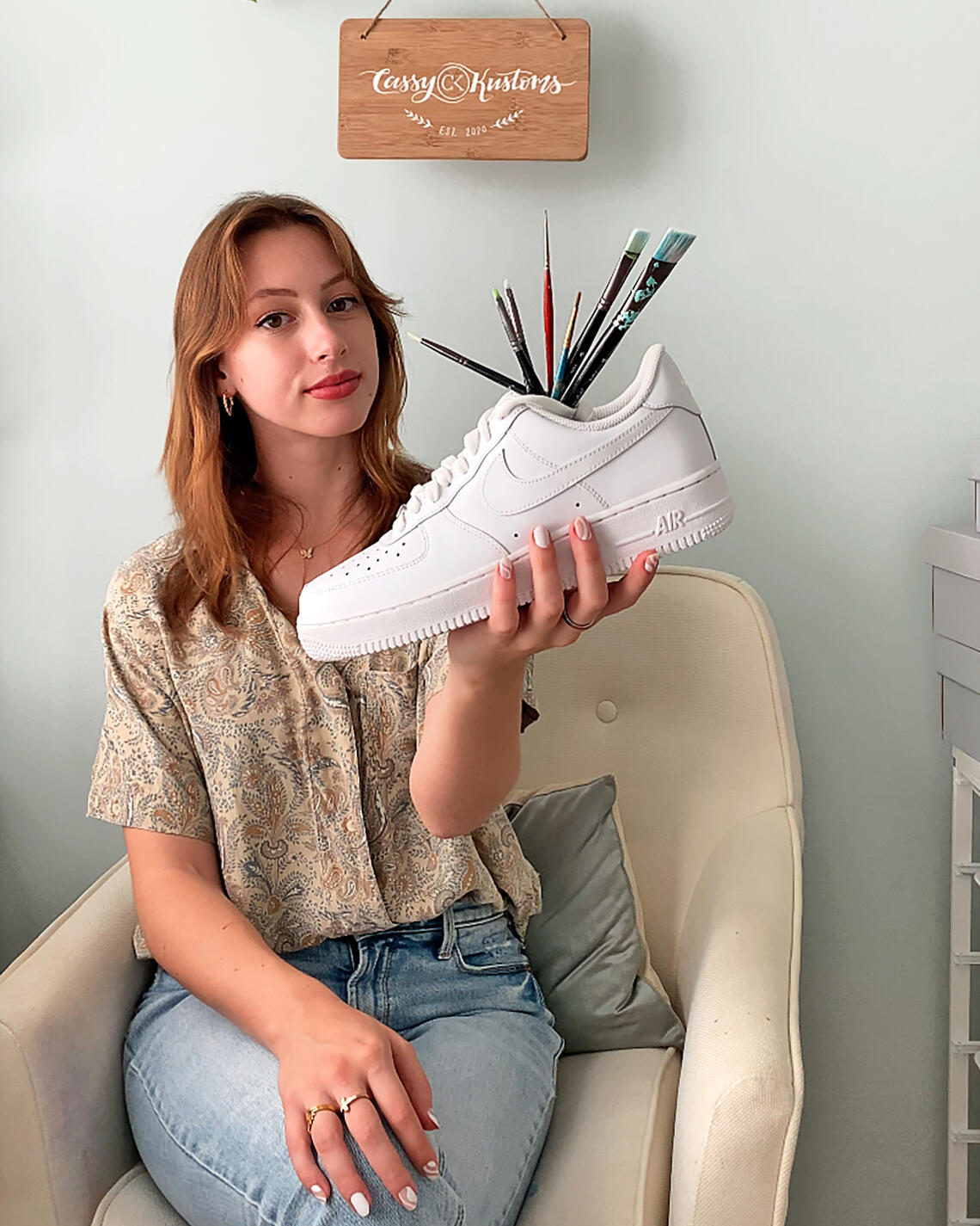 Cassy Kustoms is my custom art business! My canvases vary from footwear to water bottles and other objects. By painting on sneakers, I am able to create wearable artwork for clients around the world.